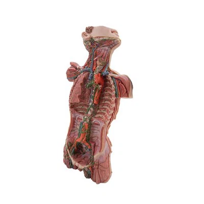 Kaulan imusolmuke, pleeuroperitoneaalinen ontelo ja lantioontelo ihmisen vartalomallin anatomia näyttää alaleuan, hyoidiluun ja siihen liittyvät lihasrakenteet, rintakehän, vatsan ja lantion syvän anatomian, oikean keuhkon, ylälaskimo-aortan, alemman laskimoaortan, aortan valtimolaskimon, sisä- ja ulkovaltimolaskimon subclavian valtimo ja laskimo, kainalovaltimo ja laskimo, sisäinen kaulalaskimo, ulkoinen kaulalaskimo, yhteinen kaulavaltimo, kilpirauhasvaltimo, niskavaltimo ja -laskimo, kasvovaltimo ja -laskimo, atsygos-laskimo ja muut vastaavat verisuonet, alaleuan alaimusolmukkeet, alaimusolmukkeet, imusolmukkeet niskaan, kohdunkaulan imusolmukkeet solmut, kainaloimusolmukkeet jne. |
